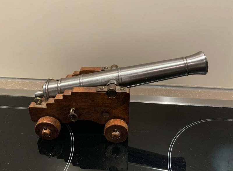 Sehr schöne kleine Vorderlader Kanone im Kaliber 45. Die Kanone ist Schussfähig, Beschusszeichen, Seriennummer und Herstellerstempel vorhanden. Maße der Kanone, Länge 20 cm Breite 8cm mit Räder gemessen