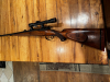 ,, Stecher ,, ausgestattet, und hat ein in die jahre gekommenes Glas ( Absehen 1 )mittels stramm saugender Einhakmontage drauf. Erstbeschuss lt. Stempel ist ,,69,,.... eine Fentilierte Schaftkappe ist auch dran. Wenn man der Büchse etwas aufmerksamkeit schenkt, erstrahlt sie bestimmt wieder im besseren Licht. Eventuell auch als Nachsuche Waffe...
