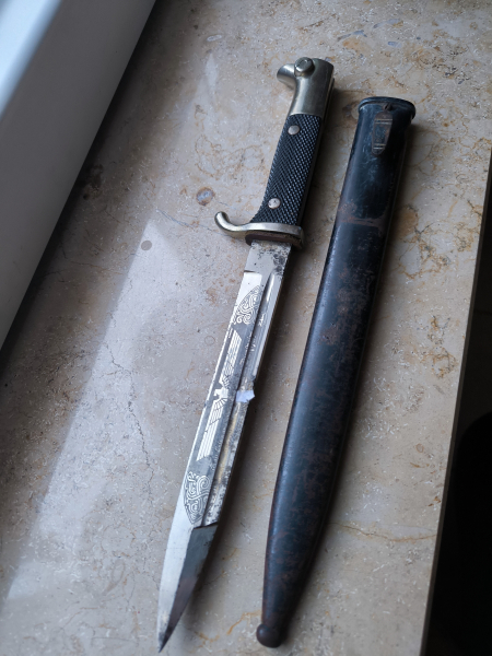 Sammlerauflösung, Ausgebajonett mit Ätzung von Anton Wingen, zur Erinnerung an meine Dienstzeit, mit Gesetz. Geschützt nicht so oft zu finden, die Ätzung noch sehr schön in Alt Deutsch geschrieben, das Griffgefäß in top Zustand, klinge etwas Nervig, Hakenkreuz etwas beschliffen, sonst im guten Zustand, fragen vorher stellen, Bilder sind Bestandteil der Auktion, Bilder schicken ich gerne, Privat Person keine Garantie nach EU Recht keine Rücknahme kein Garantie keine Gewährleistung