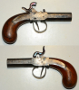 Perkussionsterzerol, Lauflänge 5,3 cm, Gesamtlänge 15,1 cm, Kaliber 13,5 mm, die Funktion ist gut, der Hahnform nach aus Frankreich, kein Beschussstempel, auf dem Lauf die Marke "BC", Alters- und Gebrauchsspuren