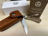 Edles Klappmesser mit einer 2,7 mm starken Drop-Point Klinge aus gebürstetem D2-Stahl. D2 ist ein hervorragender, rostfreier Messerstahl mit langer Schnitthaltigkeit und guten Schärfeigenschaften. Mit ergonomischen Griff aus echtem Hirschhorn. Ein Nail Nick in der Klinge erleichtert das Öffnen. Zudem wurde mit einer anwenderfreundlichen Back-Lock-Verriegelung gearbeitet. Durch das Drücken des Back-locks kann das Messer entriegelt und geschlossen werden. Inkl. Sattellederscheide. Klingenlänge: 9 cm. Gewicht: 128 g.