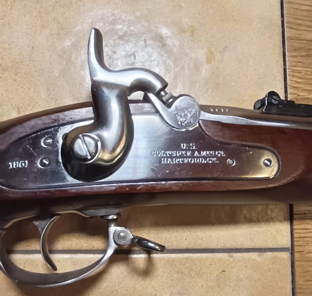 Artikelbeschreibung: Zum Verkauf steht eine italienische Reproduktion des U.S. Springfield Model 1861 bzw. Colt Special Model 1861. Die Waffe stammt aus einem Nachlass. Dieses Modell ist eine historisch korrekte Nachbildung der im amerikanischen Bürgerkrieg verwendeten Perkussionsgewehre und überzeugt durch ihre klassische Optik und den sehr guten Erhaltungszustand. Technische Daten Modell: Springfield Model 1861 / Colt Special Model 1861 (Reproduktion) Kaliber: .58 (Minie-Geschoss) Zündsystem: Perkussion Pulverangabe am Lauf: 10 g PM / 31 g Pb Hersteller: Italienischer Repro-Hersteller (vermutlich Euroarms oder ArmiSport / Chiappa) Italienische zivile Beschusszeichen (Gardone) Beschriftung / Stempel Schlossplatte mit historischer Nachprägung: U.S. / COLT’S PT. ARMS Co. / HARTFORD CT (typisch für Reproduktionen des Colt Special Model 1861) Zustand sehr guter, sammlerwürdiger Gesamtzustand Metallteile sehr sauber, nahezu neuwertig Lauf mit frischer, gleichmäßiger Brünierung Pistonbereich sauber, keine Korrosion Holz sehr gut erhalten, kaum Gebrauchsspuren Schloss mechanisch einwandfrei Keine Risse, keine Reparaturen, keine Bastelarbeiten Optisch wie technisch ein sehr schönes Exemplar – ideal für Sammlung, Darstellung oder den Schießbetrieb mit Schwarzpulver. Hinweis Es handelt sich nicht um ein originales historisches Stück, sondern um eine Reproduktion. Der Vorderlader ist erlaubnisfrei ab 18 Jahren gemäß deutschem Waffenrecht. Lieferumfang Waffe wie abgebildet kein Zubehör kein Schwarzpulver / keine Zündmittel