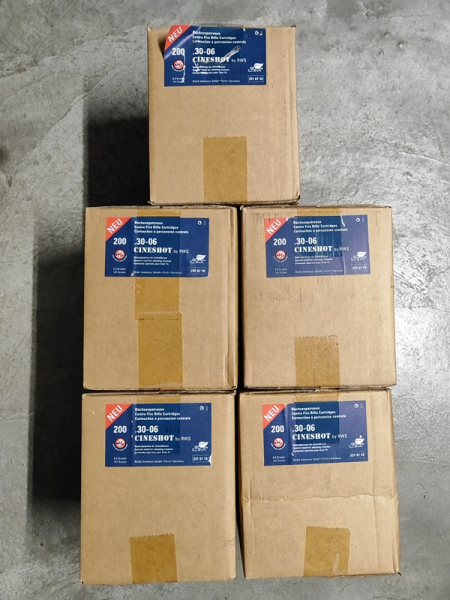 Zum Verkauf stehen 1000 Schuss RWS Cineshot im Kaliber .30-06 mit 9,5g/147grain.