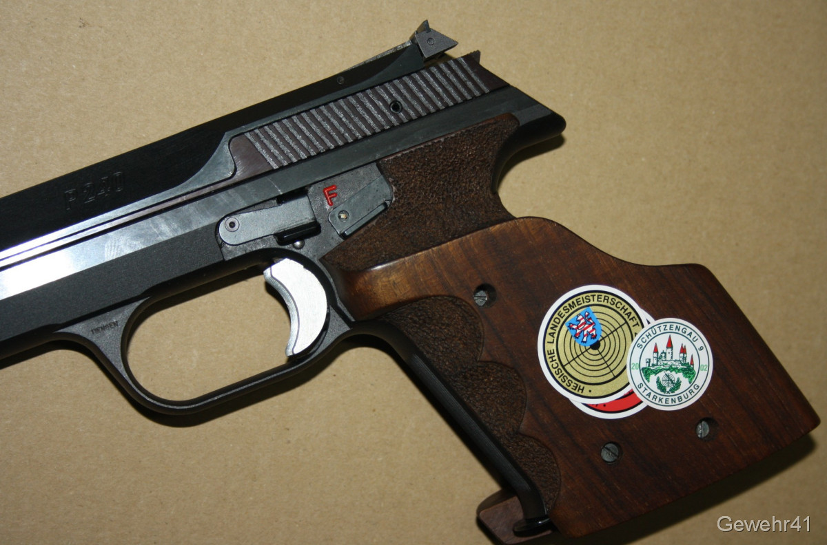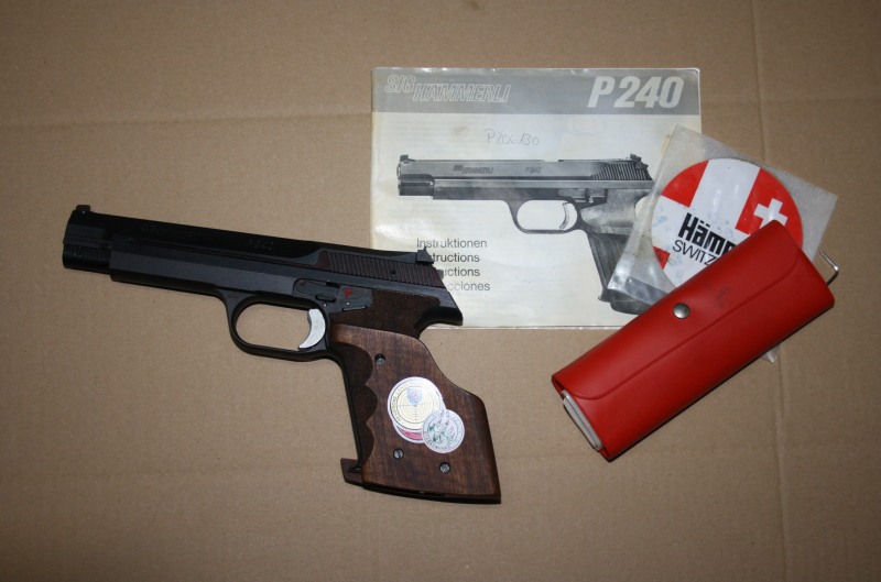 Sie bieten auf diese absolut neuwertige, stets gepflegte SIG P240 im Kal. .32 S&W long WC. Lauf und Funktion einwandfrei. Lieferung inkl. dem abgebildeten Zubehör und dem montiertem Nill-Griff.