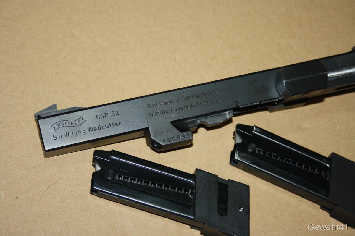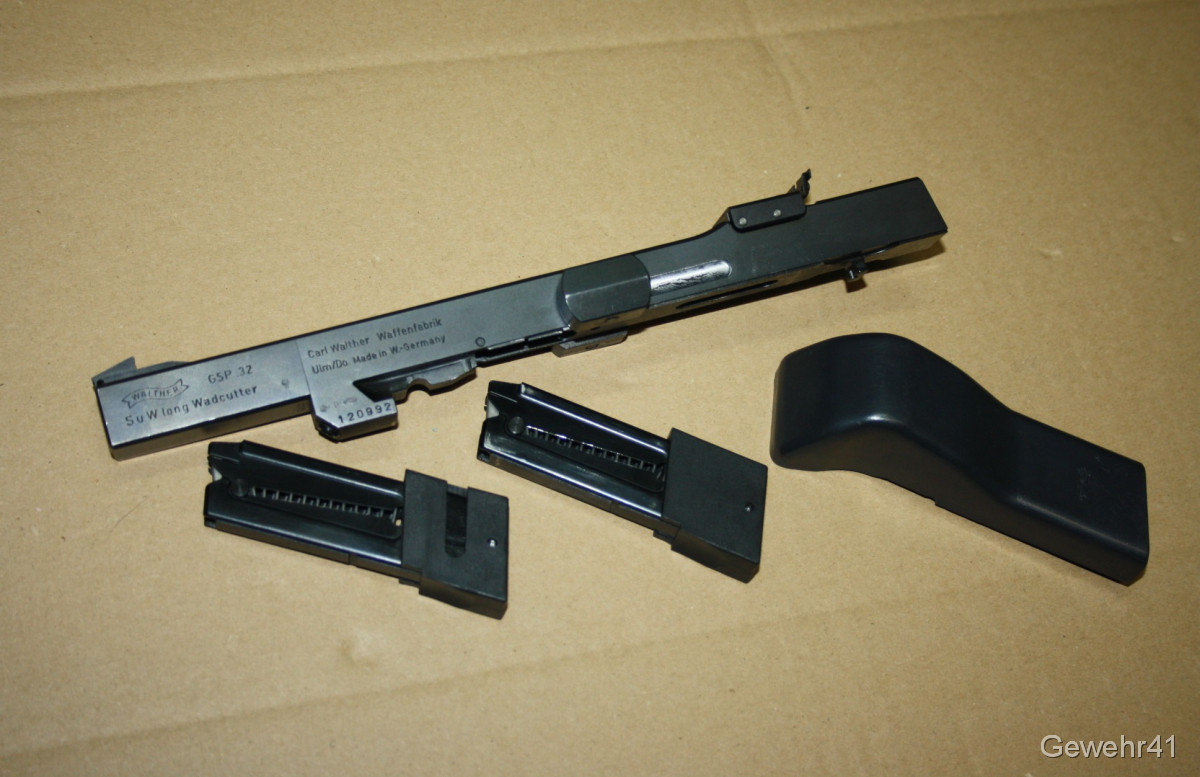 Sie bieten auf dieses Wechselsystem für Walther GSP im Kal. .32 S&W long WC inkl. 2 Magazinen und Hülsenfang. Schöner, gepflegter Zustand. Lauf und Funktion einwandfrei.