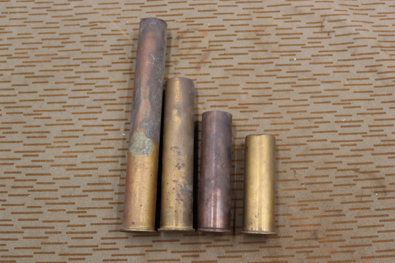 4x Messing Leuchtpatronen Hülsen Kal. 4. 19cm, 13cm, 10cm und 8,2cm