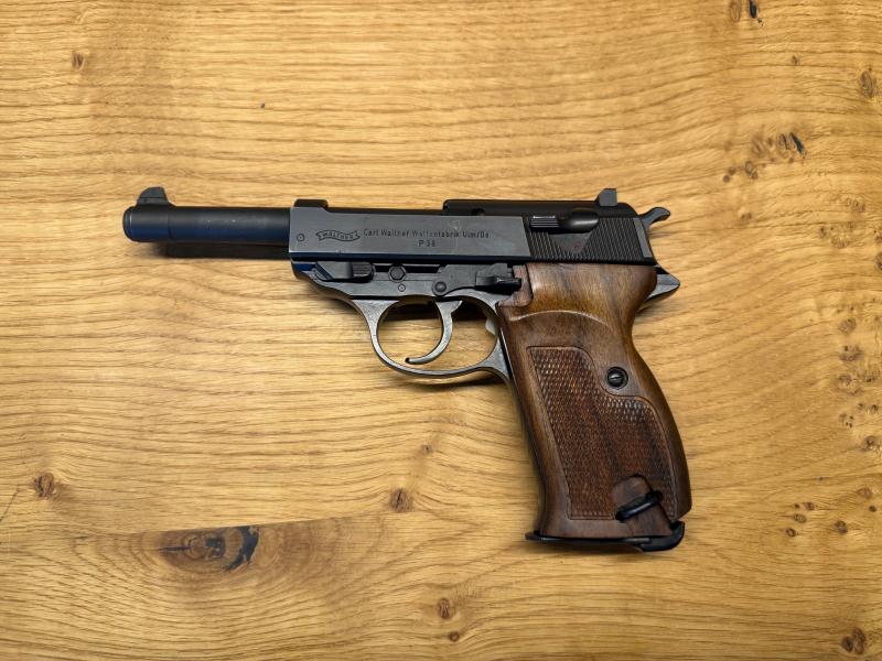 Zum Verkauf steht eine halbautomatische Pistole P38 der Marke Walther im Kaliber 9mm Luger. Die Waffe befindet sich in einem guten gebrauchten Zustand.