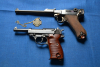 Verkaufe Lange Pistole Mod. DWM 1916, Konstruktionsjahr 1900, Lauflänge 192,2 mm Griffschalen aus Holz, Hebelsicherung, Verschluss verriegelt. In Ergänzung: Pistole P 38 Deutsche Wehrmacht ac 43, Rückstoßlader, verriegelter Verschluss, Hahn und Schlagbolzenzündung