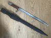 Ich biete seltenes deutsches Ersatzbajonett S1914 Typ II in sehr gutem Zustand an. Der Bajonettschutz trägt die Regimentsnummer des 124. Infanterieregiments, was äußerst selten ist. Die Scheide ist, obwohl sie auf der Rückseite leicht eingedellt ist, in sehr gutem Zustand. Der Lederaufhänger weist Gebrauchsspuren und Spuren einer alten Reparatur in der Nähe des Hakens auf, sowie die Stempel BAXIII, 191?ю Der Holzgriff weist keine Absplitterungen oder Risse auf. Die Klinge ist in gutem Zustand, frei von Rost und Narben. Klinge sind dunkle Flecken vorhanden, die jedoch vom neuen Besitzer bei Bedarf problemlos entfernt werden können. Sollten Sie weitere Fotos benötigen oder Fragen haben, kontaktieren Sie mich bitte vor dem Kauf. Der Versand innerhalb der EU kostet 30 € und ist voll versichert. Für Versandkosten außerhalb der EU erfragen Sie diese bitte vor dem Kauf.