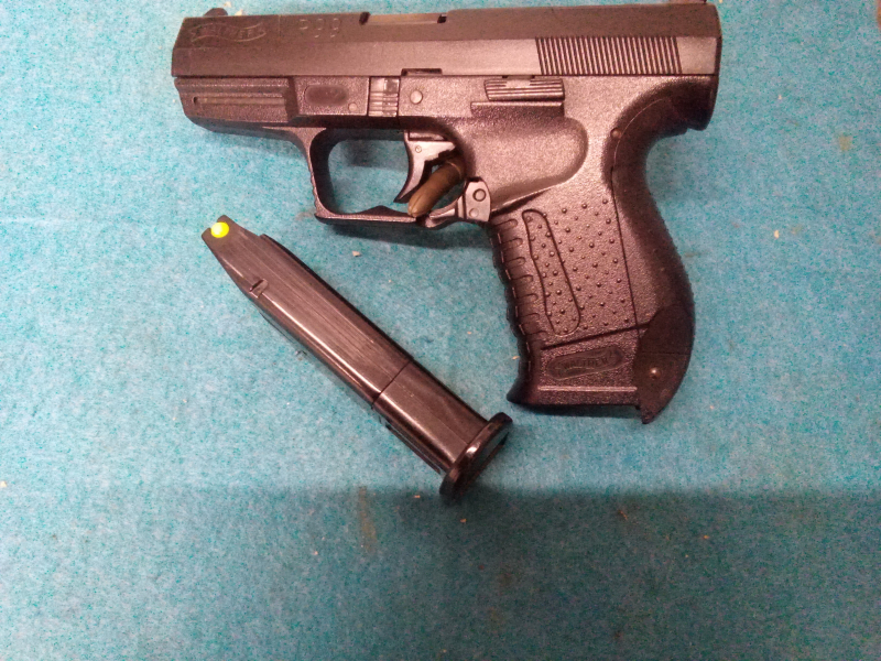 Hallo biete eine PISTOLE MODELL P99 WALTHER IM KALIBER 5.5MM RUNDKUGELN.SIE IST FEDERDRUCK.