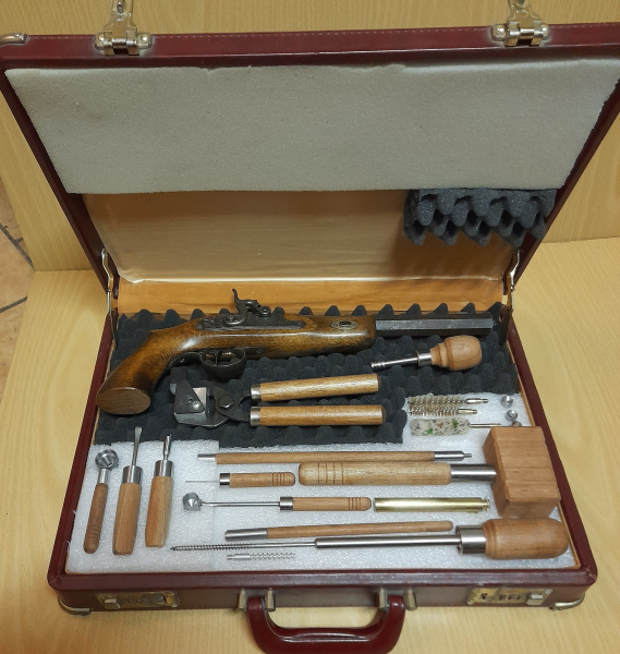 Hallo, ich verkaufe hier mein aller erstes Percussion Vorderlader Pistolen-Set im Lederkoffer mit einem großen Sortiment an Zubehör als Starterset. Die VL-Pistole hat das Kaliber 45 und ist sehr angenehm zu schießen. Der Lauf ist wie sonst üblich Schwarz Brüniert. Zu diesem Pistolenset gehört ein Putzstockt, ein Ladestock, ein Pulver-Dosierer, ein Kugelstarter, eine Messingbürste, eine Neylonbürste, ein Wollwischer ein Pulvertrichter, ein Pistonschlüssel, ein Schraubendreher, ein Zündkanal-Reiniger, ein Blei-Gießlöffel, ein Ladehammer, ein Läppchenzieher, ein großen Kugelzieher, eine Kokille für Rundkugeln, ein Stopfen für Rundkugeln, einen für Spitzgeschosse, einen für Flachgeschossen alle mit dem Ladestock verschraub bar und natürlich die Percussions-Pistole samt Lederkoffer das macht alles in allem 21 Teile. Das gesamte Werkzeug ist noch völlig Jungfräulich und unberührt, weder die Kokille noch der Gießlöffel als auch das Kleinwerkzeug war jemals im Einsatz, lediglich mit der Pistole habe ich hin und wieder mal geschossen. Alles was sie sehen gehört zum Angebot. Ein solches Set und in diesem Umfang werden sie so schnell nicht wiedersehen und ist hier im E-Gun auch in diesem Umfang noch nicht angeboten worden. Bitte sich die Bilder ansehen sie sind Teil der Beschreibung, sie kaufen das was sie sehen, auf Wunsch kann ich aber noch welche zusenden. Hier noch ein Hinweis aus gegebenem Anlass – Sie ist Alt – ist nicht Makellos – hat sicherlich den einen und anderen Fehler – ich beschreibe hier nicht jede Kleinigkeit, Fragen stellt bitte vorher wer damit nicht einverstanden ist bitte nicht bieten. Und zum Schluss noch das Übliche das schreibt das neue EU-Gesetz vor, nachfolgenden Vermerk aufzuführen: "Ich verkaufe bei meinen Auktionen ausschließlich Gebrauchtware, sofern nicht anders beschrieben. Diese Waren sind aus meinem Privatbesitz und ich verfolge mit meinen Auktionen keinerlei gewerbliche Zwecke. Eine Rechnung gibt es hierfür nicht. Da mittlerweile auch Privatverkäufer ein Jahr Gewähr leisten müssen, wenn sie das nicht ausschließen, erkläre ich hiermit ausdrücklich, dass ich für meine privat versteigerten Artikel keine Gewährleistung und keine Rücknahme übernehme. Mit der Abgabe eines Gebotes erklären Sie sich ausdrücklich damit einverstanden, auf die Ihnen nach neuem EU-Recht gesetzlich zustehende Gewährleistung/Garantie bei Gebrauchtwaren völlig zu verzichten. Somit ist eine Sachmängelleistung, Garantie - Rückgabe - Umtausch und der gleichen ausgeschlossen.