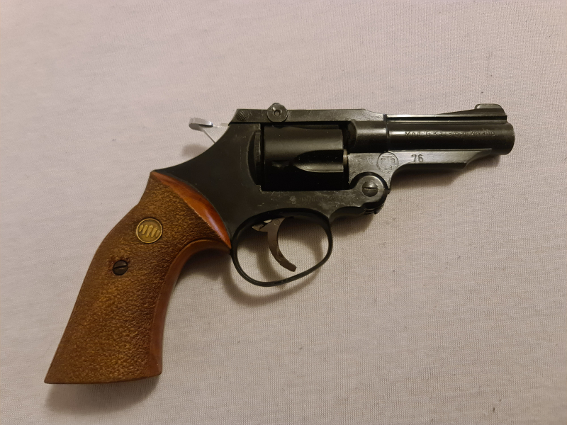 Ganz seltenes Sammlerstück, einer der ganz wenigen Schreckschuss Kipplauf Revolver aus guter alter deutscher Fertigung der Traditionsfirma Mayer & Söhne: Mod. G , PERFEKTA 2000. Sehr frühe PTB 43, Beschuss Kennung 76 = 1976 und somit 50 Jahre alt, geschossen mit Gebrauchsspuren aber gepflegt, vollständig und voll funktionstüchtig! Trockentest natürlich OK und zwar inkl. der tollen Auswurfautomatik der verschossenen Hülsen bei der weiten Abkippung.