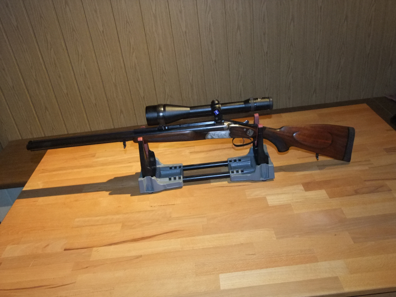 Drilling, Sauer & Sohn 3000, Kal. 7x65R / 12/70, mit einem Zeiss Diavari ZM 3-12x56 mit LP(Nachtabsehen) Abs.4. Es ist ein Einstecklauf der Firma B. Fritz in .22 Hornet verbaut. Dieser ist von vorne verstellbar. Handwerklich hochwertig ausgeführter Drilling des Typs 3000 aus der Fertigung des renommierten Waffenherstellers Sauer & Sohn, hervorragend für jagdliche Zwecke geeignet. Für einen schnellen Nachladevorgang ist die Waffe mit einem Auszieher ausgestattet. Zudem sind für alle Läufe Ladezustandsanzeiger vorhanden. Das Zeiss ZF ist mit einer SEM verbaut, wo der Vorderring so angebracht ist, dass ein Vorsatzgerät montiert wenden kann.