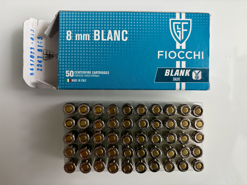 Platzpatronen Fiocchi Kaliber 8 mm K. für Pistolen 50 Stück aus Sammlung. Da aus privatverkauf ohne Rücknahme oder Garantie.