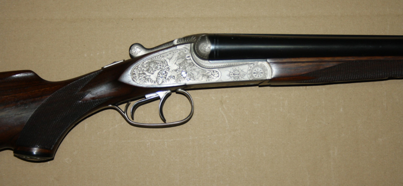 Sie bieten auf diese exklusive und hochwertige Doppelflinte aus dem Hause Merkel/ Suhl Modell 47E im Kal. 12/70. Die Flinte stammt aus gepflegtem Erstbesitz, die Läufe und die Funktion sind einwandfrei. Lauflänge 71cm, Schaftlänge 36,5cm, Gesamtlänge 113cm.