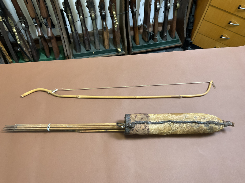 Bambus Pfeilbogen mit Lederköcher - Sammlerstück