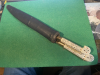 altes Messer mit passender Gabel silbertauschiert bezeichnet mit Sarajewo 1884 in sehr guter Qualität es scheint sich um Damaststahl zu handeln ca 35 cm lang