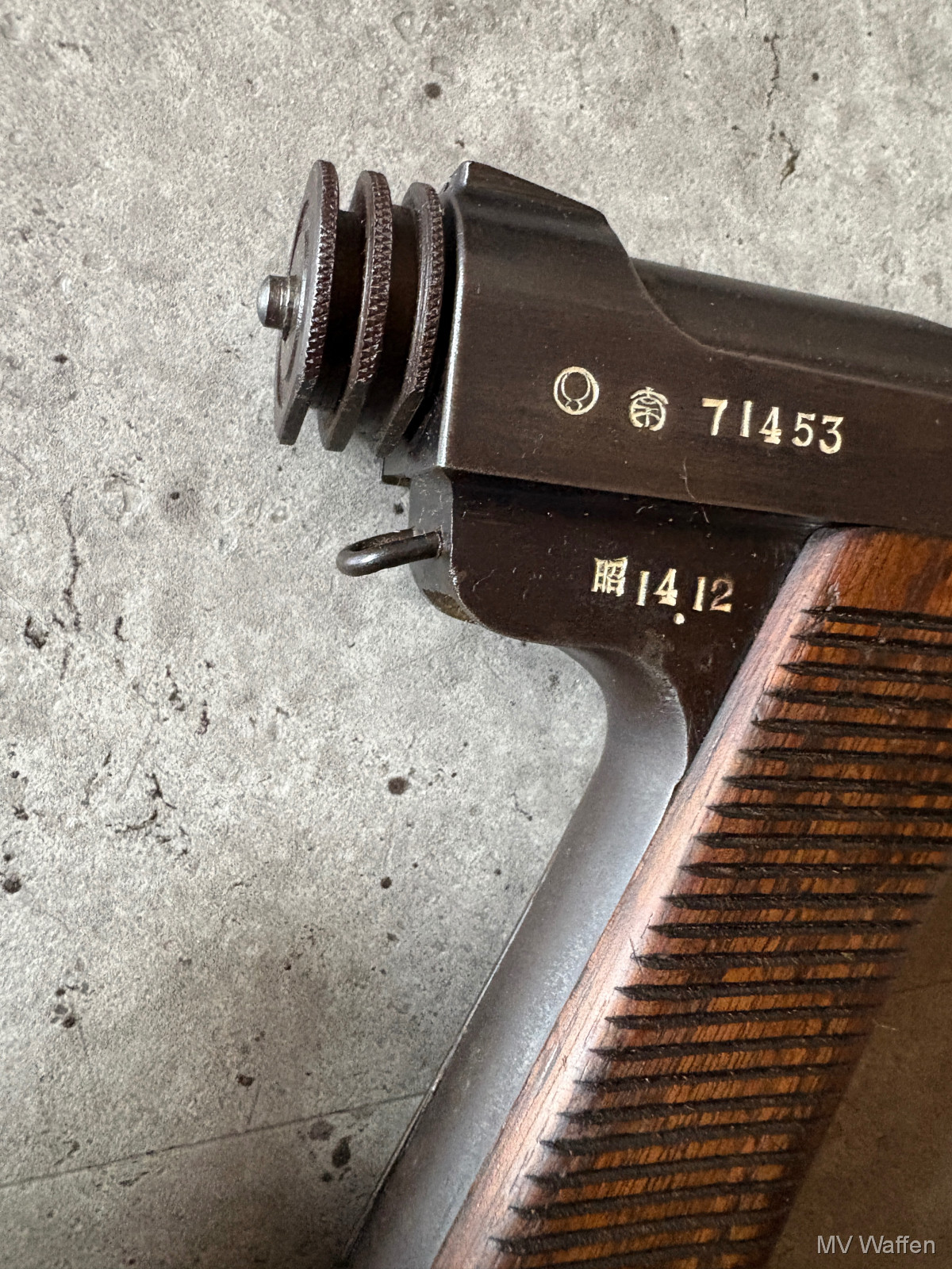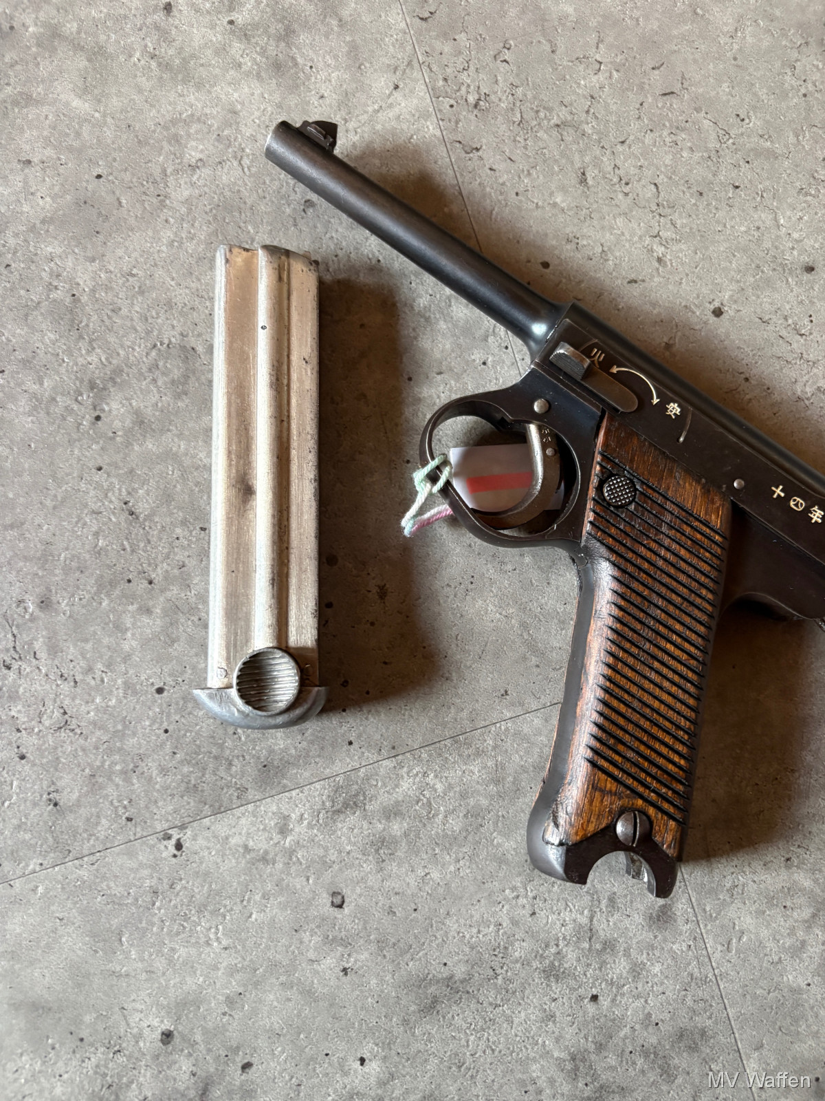 Sehr schöne und seltene Nambu Typ 14 in Kaliber 8mm Nambu. War Jahrzehnte Teil einer Sammlung. Waffe wurde nicht Probegeschossen, dennoch alle Funktionen gegeben. Interessante Waffe für Sammler, ohne gültigen Beschuss. Selten in diesem Zustand zu bekommen. Japanische Waffe aus dem Zeitraum 1906-1945. Zuschlagen bei der Gelegenheit. Direktversand an Europäische Händler möglich. Fragen Sie bitte nach den Versandkosten. Wie immer völlig unbearbeitet um Ihnen einen ehrlichen Eindruck des Zustandes zu ermöglichen.. Diese Sammelwaffe kann natürlich gerne, nach vorheriger Absprache in Wolfratshausen besichtigt werden
