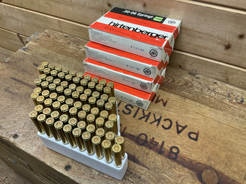 80 Patronen aus einer Charge im Kal..30-06 von Hirtenberger mit NOSLER Geschoss 11,6g, neuwertiger Zustand und Menge siehe Bilder!