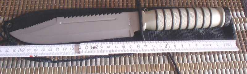 Biete ein sehr schönes Bowiemesser mit Sägezahnklinge,ca.33.cm lang mit Scheide.Das Messer ist unbenutzt aus einer Sammlung.