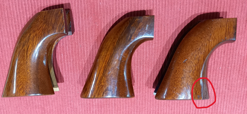 Biete hier 3 Griffe und einen Griffrahmen aus Messing für SAA Revolver. Haben sich über die Zeit angesammelt. Hersteller nicht bekannt. Der rechte Griff hat eine Reparaturstelle siehe Bild 1. Die Bilder sind Teil der Beschreibung.