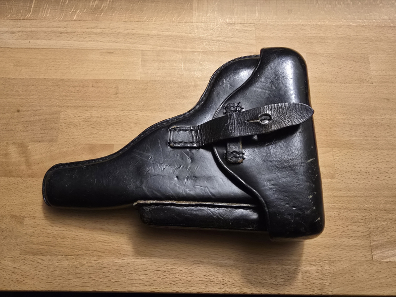 Hier kommt wie auf den Fotos zu sehen ist, eine vermutlich aus DDR Fertigung stammende Lederholstertasche für eine 08.