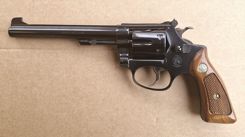Sie bieten auf einen Revolver von Smith & Wesson, Modell 35-1 im Kaliber .22lr. Das Besondere an diesem Revolver ist der 6" Lauf. Dieser wurde von Smith & Wesson nur in sehr geringen Stückzahlen verbaut und in Deutschland kaum zu bekommen. Die Waffe stammt auch aus dem Besitz eines Sammlers. Der J-Frame sorgt trotz des 6" Laufs für ein geringes Gewicht von 750g. Das Visier ist voll verstellbar und der Lauf hat ein Target Korn. Der Zustand ist sehr schön, der Revolver wurde auch kaum geschossen und die Verarbeitung ist hochwertig. Das Timing ist einwandfrei und das Trommelspiel ist gering. Die hochglänzende Brünierung hat kaum Gebrauchspuren, unter dem Abzugsbügel ist ein Kratzer, ansonsten ist nichts zu erkennen. Ein toller Revolver für Sammler, auch für Sportschützen die einen Revolver mit geringerem Gewicht mögen oder auch für Jäger für die Fallenjagd, falls der Revolver nicht zu schade zum Führen ist. EWB erforderlich, internationaler Versand nur durch einen zu benennenden deutschen Händler.