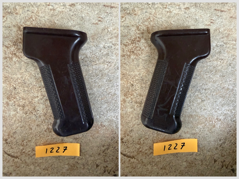 Der Griff war im NVA-Einsatz, mit deutlichen Gebrauchsspuren, aber ohne Risse und stammt aus DDR Produktion, siehe Foto. Durch eine Reinigung lässt der Zustand noch deutlich verbessern.