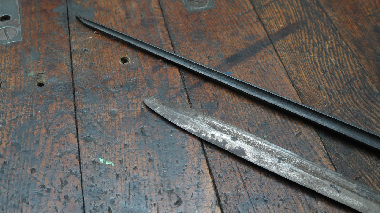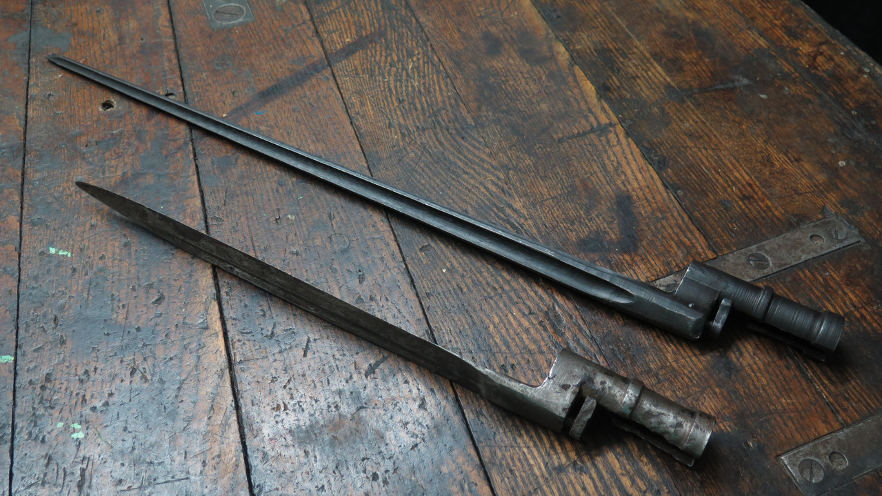 Das zum Vergleich beigelegte Nadelbajonett, ebenfalls russisch,