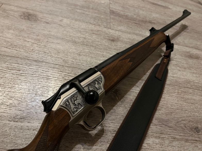 Blaser R93 Repetierer Kaliber 30-06 Springfield Waffe ist im guten Gebrauchs zustand Die Schussleistung der Waffe ist hervorragend, eben Blaser lauf ist Blitz Blank Lauflänge 57cm, Gesamtlenge 101cm. Im Schaft sind ein paar Dellen drin. Normale Jagdliche gebrauch spuren Schaft mit Backe , Gumikappe , Feinabzug , Griffkäppchen in Silber Damhirsch Prägeplatten auf das System seitlich Gravur Rehwild und Gamswild Waffe ist sehr führig. und voll Einsatz Bereit... siehe Bilder mit Gewehrriemen. (Privatverkauf ohne Garantie oder umtausch ) Versand und Verkauf nur in Deutschland