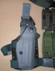 Zum Angebot kommt ein fünf teiliges Set, bestehend aus einem Original Safariland Oberschenkelholster für die HK USP oder auch für die P8 der Bundeswehr, einer dreifach Magazintasche für doppelreihige Pistolenmagazine von 75Tactical, einer vierfach Molle Magazintasche in flecktarn ebenfalls für Pistolenmagazine von KHS Products, einer einzelnen Molletasche für Tools oder Magazine von einem unbekannten Hersteller mit einem zusätzlichen Malice-Clip sowie einem original Blackhawk Gürtel in Oliv.