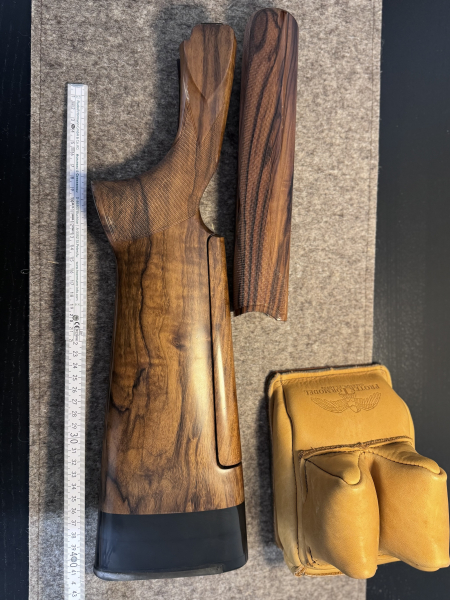 Der Schaft (Hinter- & Vorderschaft) wurde von einem Büchsenmacher verlängert, bei Bedarf kann die Schaftkappe einfach gewechselt werden und Sie erhalten die originale Schaftlänge von Perazzi.