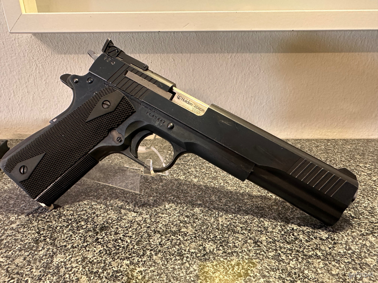 Biete aus Nachlass KPS Peters Stahl 45ACP 6‘zoll Poligonlauf Top+ Wechselsystem Colt MK IV Serie 80 . Pro System 2x Magazine. Zustand siehe Fotos. Sportgerät kann kostenlos gelagert werden. Ideale Waffe für Einsteiger. Fragen gerne via WhatsApp 01621555566