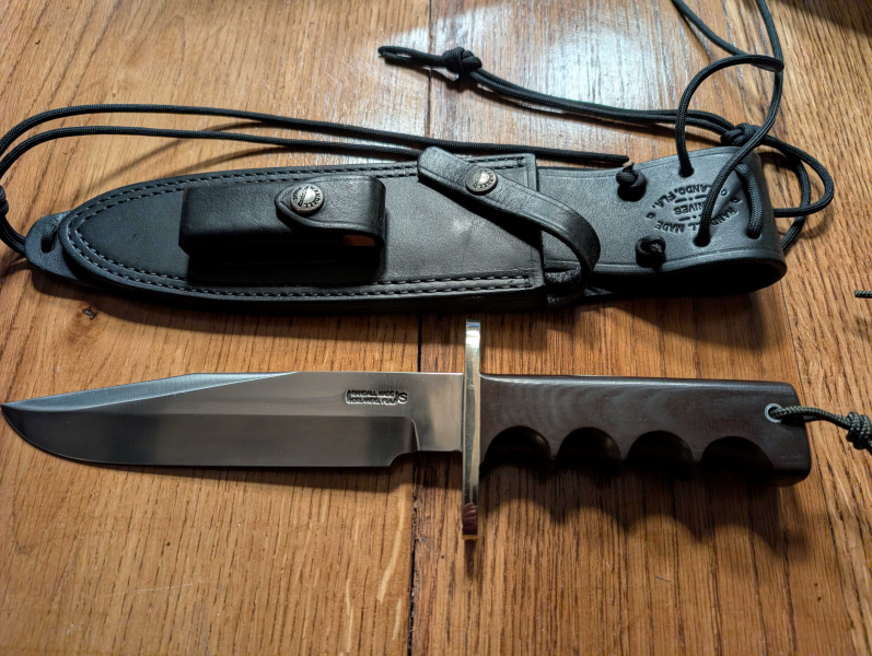 Randall 14 Attack, stainless steel, brauner Micarta Griff, schwarzer Lederscheide. Zustand entnehmen sie bitte den Fotos.