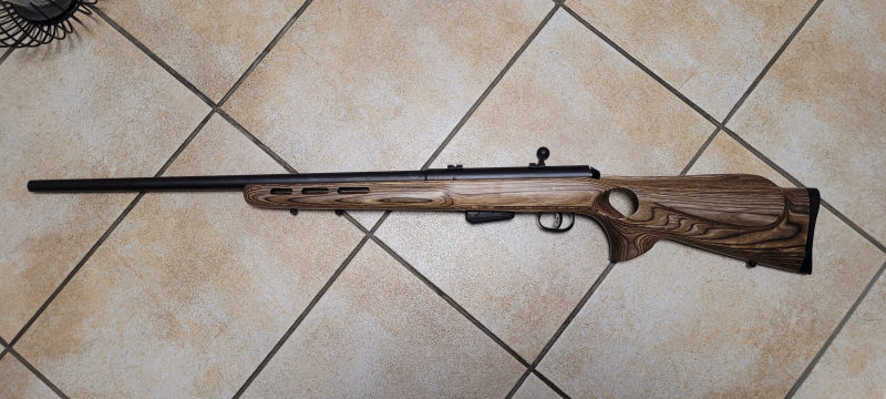 Im Kundenauftrag verkaufe ich eine Savage Modell 25 im Kaliber .222 Rem. inkl. Montagebasen. Die Waffe verfügt über einen Lochschaft aus Schichtholz.