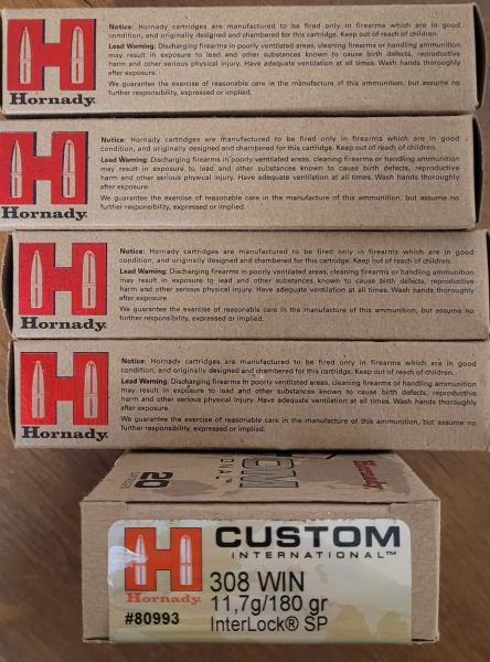 Hornady Custom mit InterLock SP Geschoss im Kaliber 308 mit 180 grains. Angebotspreis je Packung