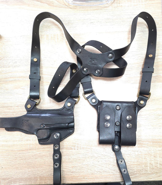 Schulterholster aus Leder für kleine Pistolen mit 2 Magazintaschen