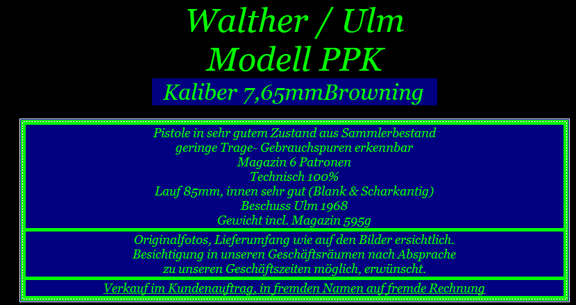 Carl Walther / Ulm Modell PPK Kaliber 7,65mmBrowning