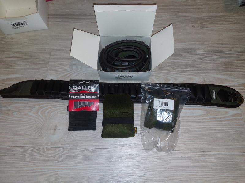 Konvolut 2x Patronengürtel Kal. 12, Allen Schaftpatronenetui, 2x Akah Patronenetui kombinierte,