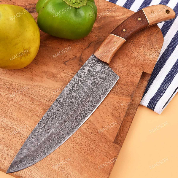 Custom Damascus Steel Chef Knife Handmade With WOOD Handle