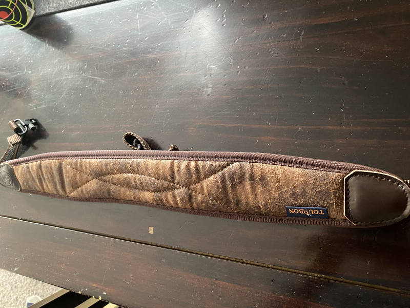 Schöner, weicher Gewehrriemen mit abnehmbaren Schnellverschlüssen. Durch die breite Form lassen sich auch sehr schwere Waffen angenehm tragen. Innseitig gummiert, dadurch guter Halt.
