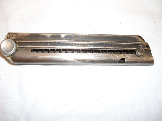 Sie bieten hier auf ein orig. 08 Magazin. Alle Teile vorhanden, Kein Rost, voll Funktionsfähig, Gehäuse ohne Stempel, Aluboden WaA 63 Nr. 4182 t +, Brünnierung noch zu 80 % erhalten. Trage- und Gebrauchsspuren zu erkennen. Zustand gemäß Fotos. Details und Fragen bitte vor Ablauf der Auktion klären. Farbabweichung durch Blitzlicht möglich. Privatverkauf kein Rückgaberecht und Gewährleistung. Der Bieter erklärt sich durch sein Gebot mit diesen Bedingungen einverstanden. Verkauf und Versand nur innerhalb von Deutschland mit Hermes Paket versichert.