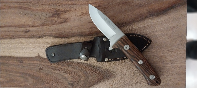 Herstellerbeschreibung: Dank der robusten Full Tang Bauweise ist das Puma IP Messer POLLUX II auch für robuste einsätze bestens geeignet. Die Drop-Point Klinge aus rostfreiem AN.58 Stahl bringt es auf eine geprüfte Rockwellhärte von 58-60 HRC. Ein Fingerschutz verhindert ein Abrutschen in die Klinge. Als Griffmaterial kommen schön gemasertem Griff aus Bocote-Holz mit Puma Emblem zum Einsatz. Eine passgenaue Gürtelscheide aus braunem Leder ist im Lieferumfang bereits enthalten.