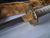 Sehr guter / neuwertiger Zustand (das Schwert hing nur als Deko an der Wand). Altersbedingt ist die weiße Baumwolle aber etwas vergilbt (das Schwert hing knapp 11 Jahre an der Wand).