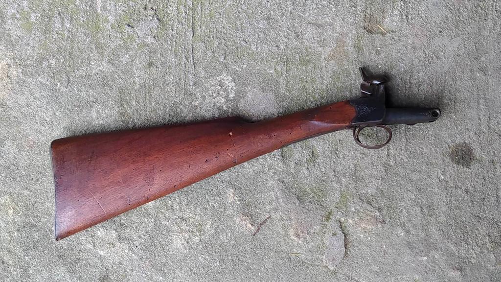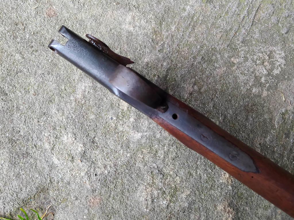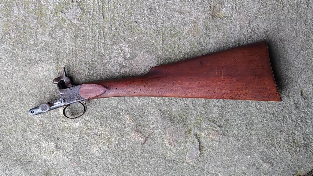 Der angebotene Schaft stammt von einem alten Vorderlader mit außenliegendem Hahn.
