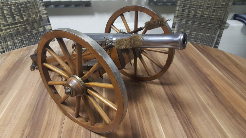 ihr bietet hier auf eine schöne Kanone mit ihrem Alter entsprechenden Gebrauchsspuren. Den allgemeinen Zustand würde ich als gut bis sehr gut beschreiben. Ein schönes, detailreich gefertigtes Stück mit Patina aus dem Hause Jukar. Solche Kanonen werden heute nur noch selten und neu wahrscheinlich gar nicht mehr angeboten. Interessant für Sammler und Böllerfans.