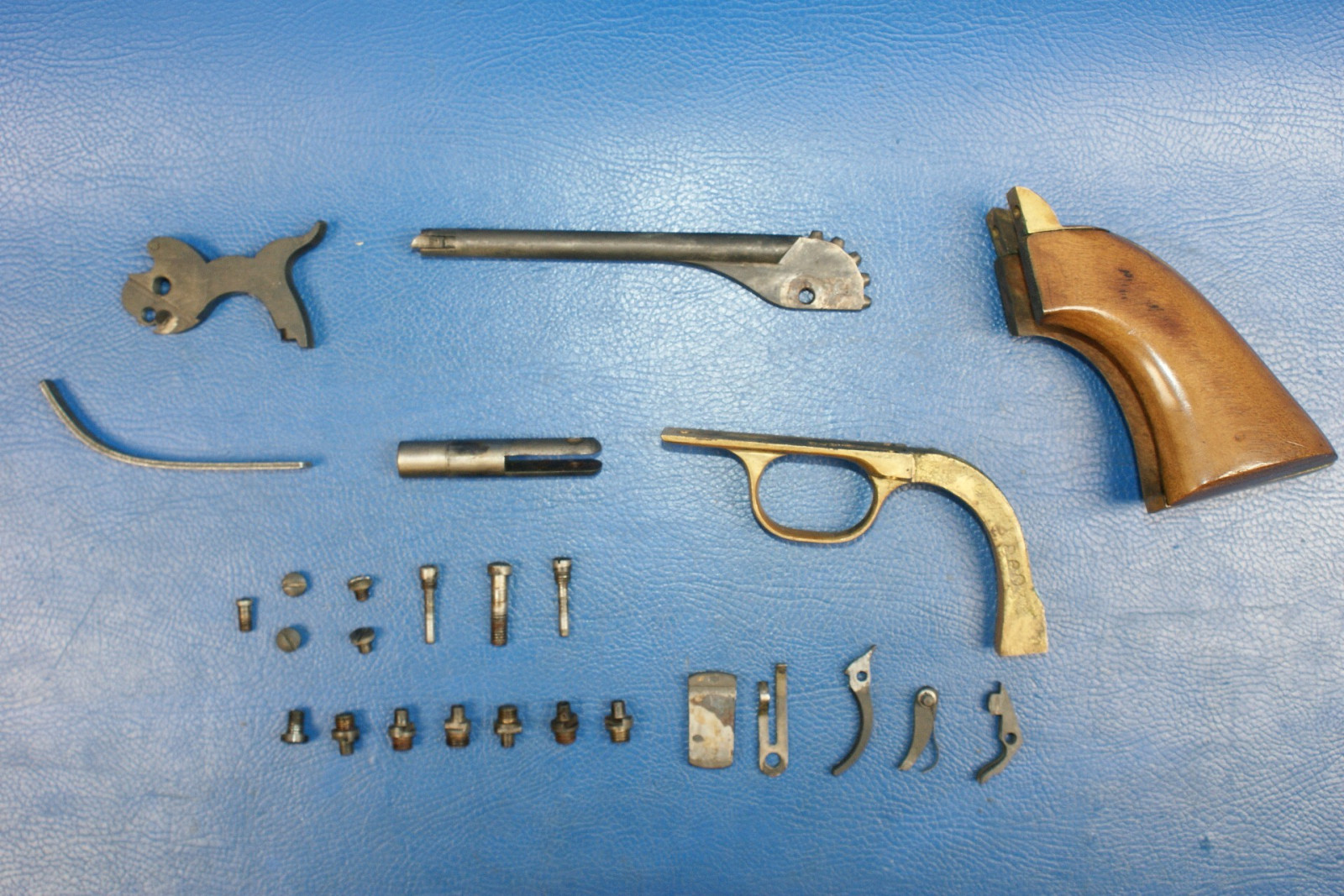 Ausgeschlachteter Revolver, Teile sind auf den Fotos erkenntlich.