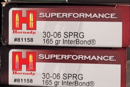 Hornady Interbond im Kaliber 30-06 mit 165 grains. Packungen haben die gleiche Produktionscharge