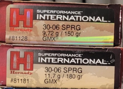Hornady mit bleifreiem GMX Geschoss im Kaliber 30-06 mit 150 grains. Angebotspreis je Packung