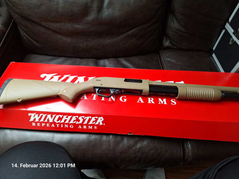 Sie bieten wegen Aufgabe des Schiess Sports auf eine neuwertige 12 er Vorderschaft Repetierflinte ( Pumpe ) in Dark Earth Farbe.
